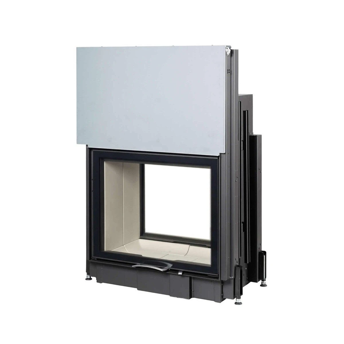 Der Austroflamm Kamineinsatz 80S II 2.0 – die Tunnelversion mit gerader Scheibe und Schiebetür.