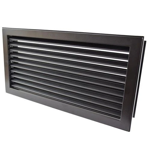CB-tec Kaltluftgitter Kamin Ofen Luftgitter 35 x 15 cm Putzbündig schwarz kgpb3515s aus Stahlblech lackiert mit feststehenden Lamellen komplett mit putzbündigem Einbaurahmen aus verzinktem Stahlblech.