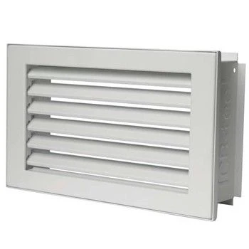 Temperaturbeständige, einbrennlackierte Oberfläche 60 mm breiter verzinkter Einbaurahmen.Zeitloses modernes Design, Massiver Stellgriff, doppelte Lamellenführung.