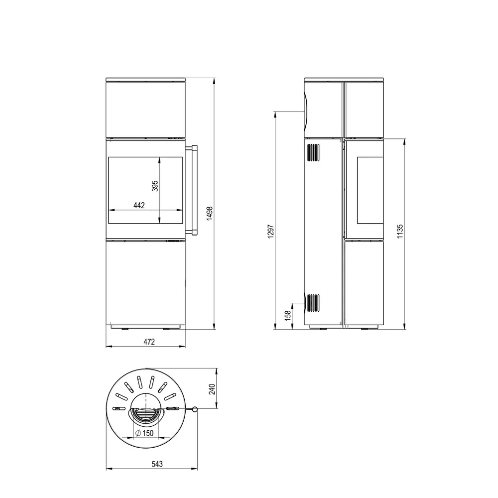 - Rauchrohrabgang: oben oder hinten wechselbar