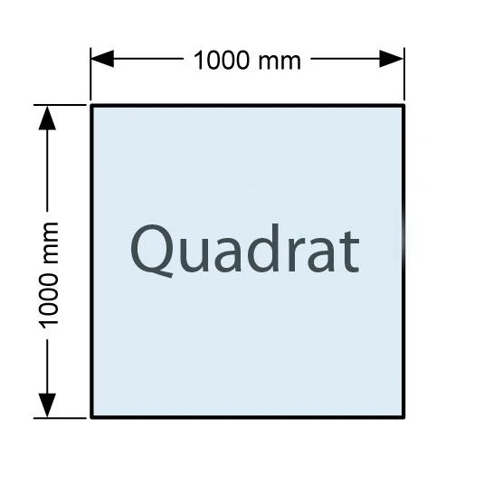 Kaminofen Unterlegplatte Bodenplatte Typ Quadrat 1000 x 1000 mm, wahlweise in Stahl schwarz oder Stahl grau, jeweils 1,5 mm stark beidseitig pulverbeschichtet, oder Spezialglas transparent 6 mm stark, mit 18 mm Facette poliert.
