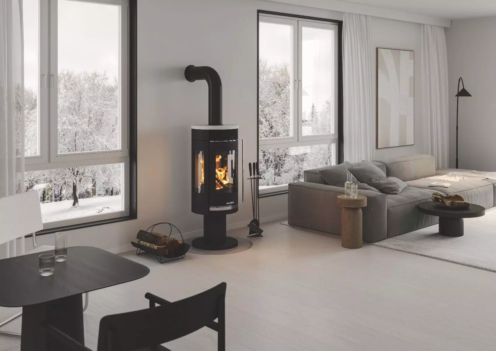Die Topplatte des Oranier Kaminofen Rota Twist ist wahlweise in Stahl, Glas, Speckstein, Sandstein, Kalkstein oder in farbiger Keramik erhältlich. Das Highlight des Kaminofen Oranier Rota Twist ist ein sich drehender Korpus, sodass man das Feuer jederzeit zu sich drehen kann.