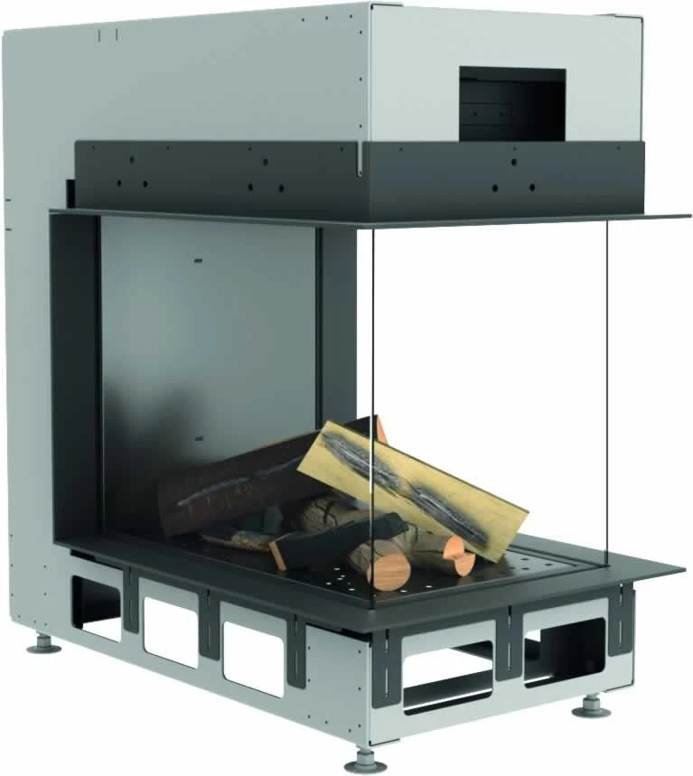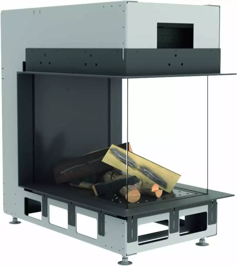 3-seitiger-Kamineinsatz als raumluftunabhängiger Raumheizer für gasförmige Brennstoffe zusammen mit dem entsprechenden Luft-Abgas- System (LAS).