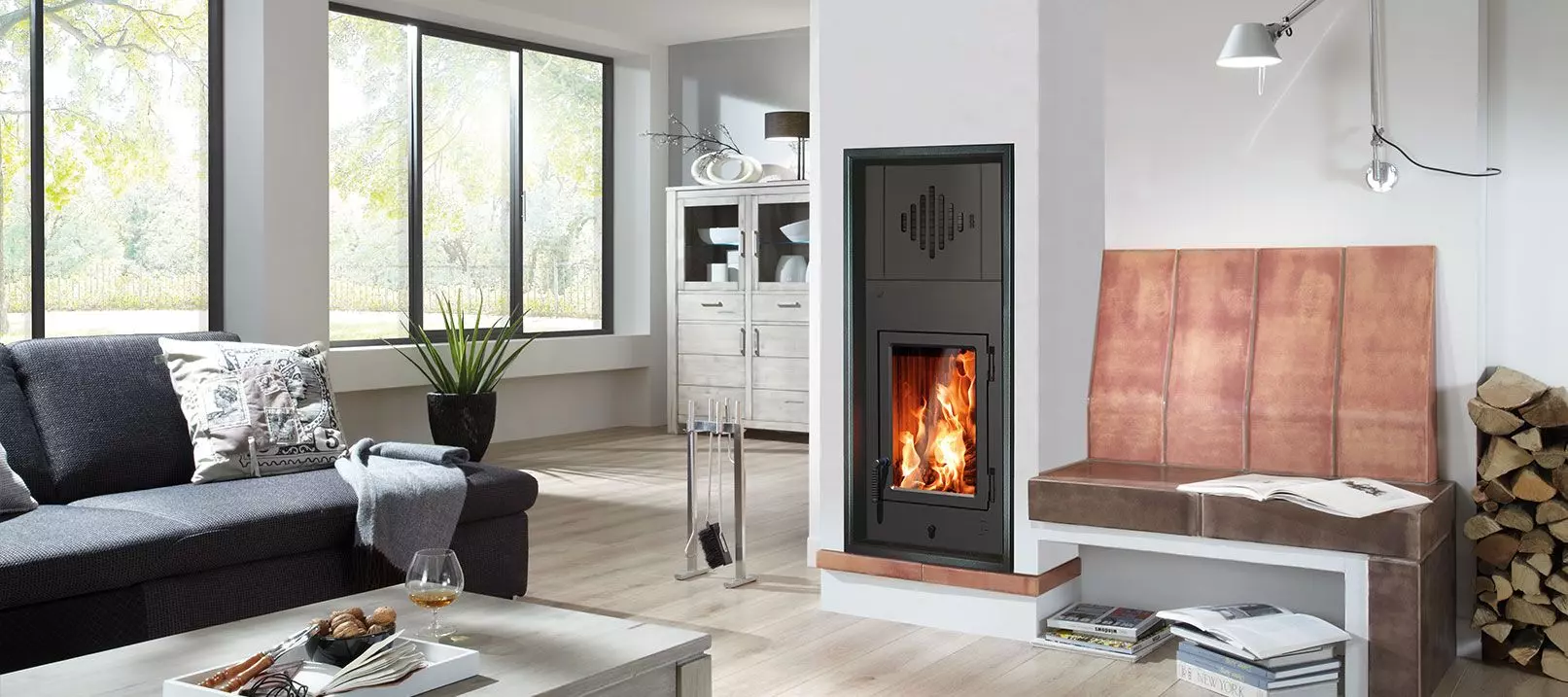 - Feuerraum mit Schamotte Auskleidung
