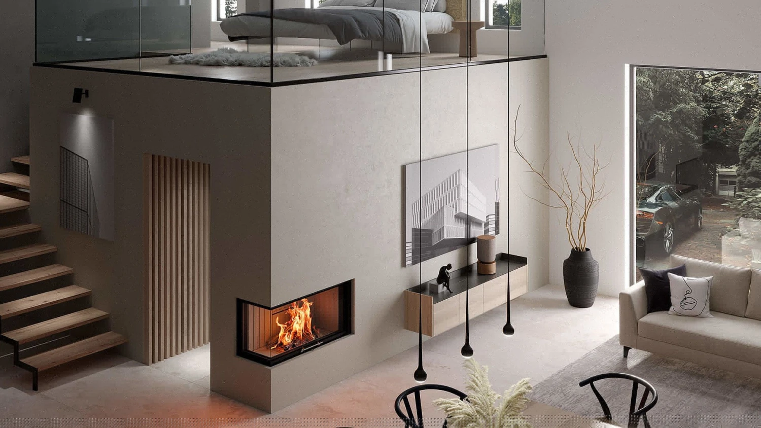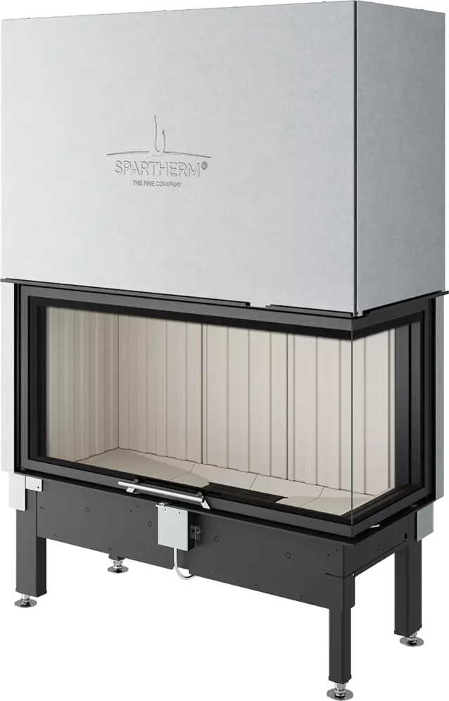Die Spartherm Brennzelle Varia 2R-100h, hochschiebbar, Türhöhe 523 mm, ist ein hochmoderner Kamineinsatz mit hochschiebbarer und (zur Reinigung) auch einseitig klappbarer Tür, der durch seine raffiniert abgewinkelte Scheibe eine mehrfache Sicht auf das Flammenspiel ermöglicht.