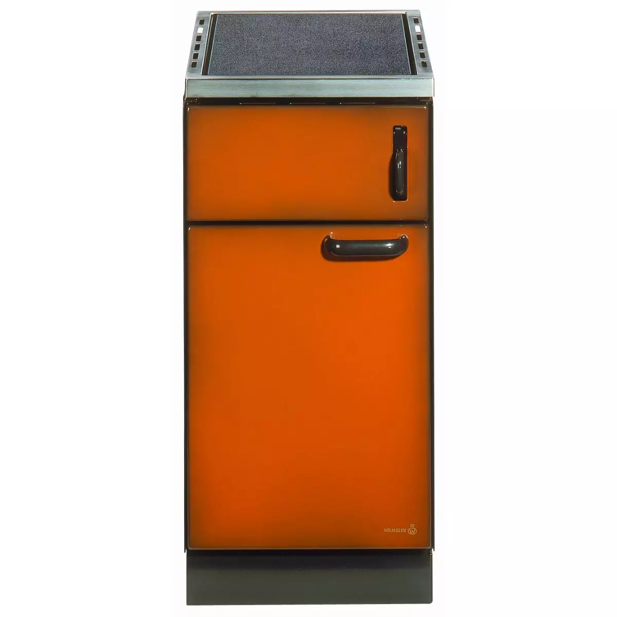 Schmaler Besistellherd in weiß mit Edelstahlrahmen sowie geschliffener Stahlplatte (auch in Ceran Lieferbar ohne Anschlussmöglichkeit nach Oben!).